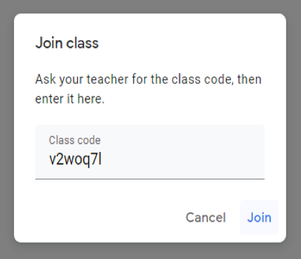 Google Classroom class code: v2woq7lRemark: Google personal account must be used for joining the class (Not applicable to school account) |