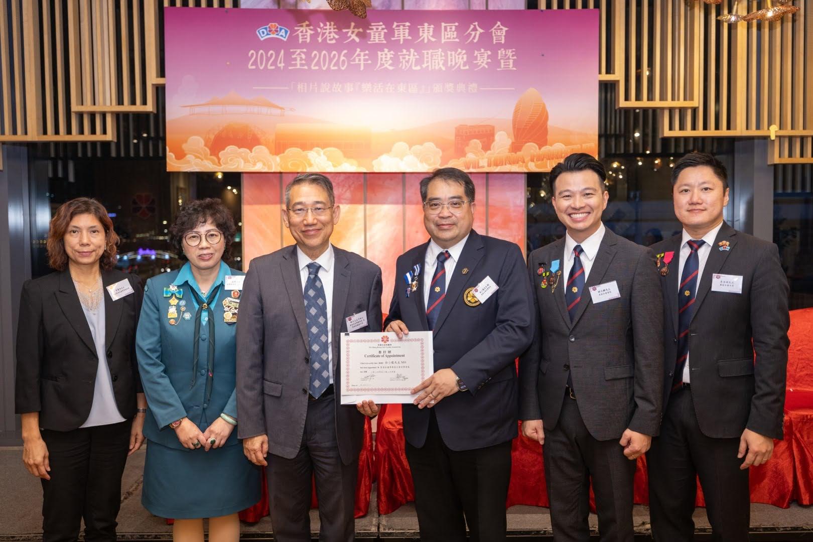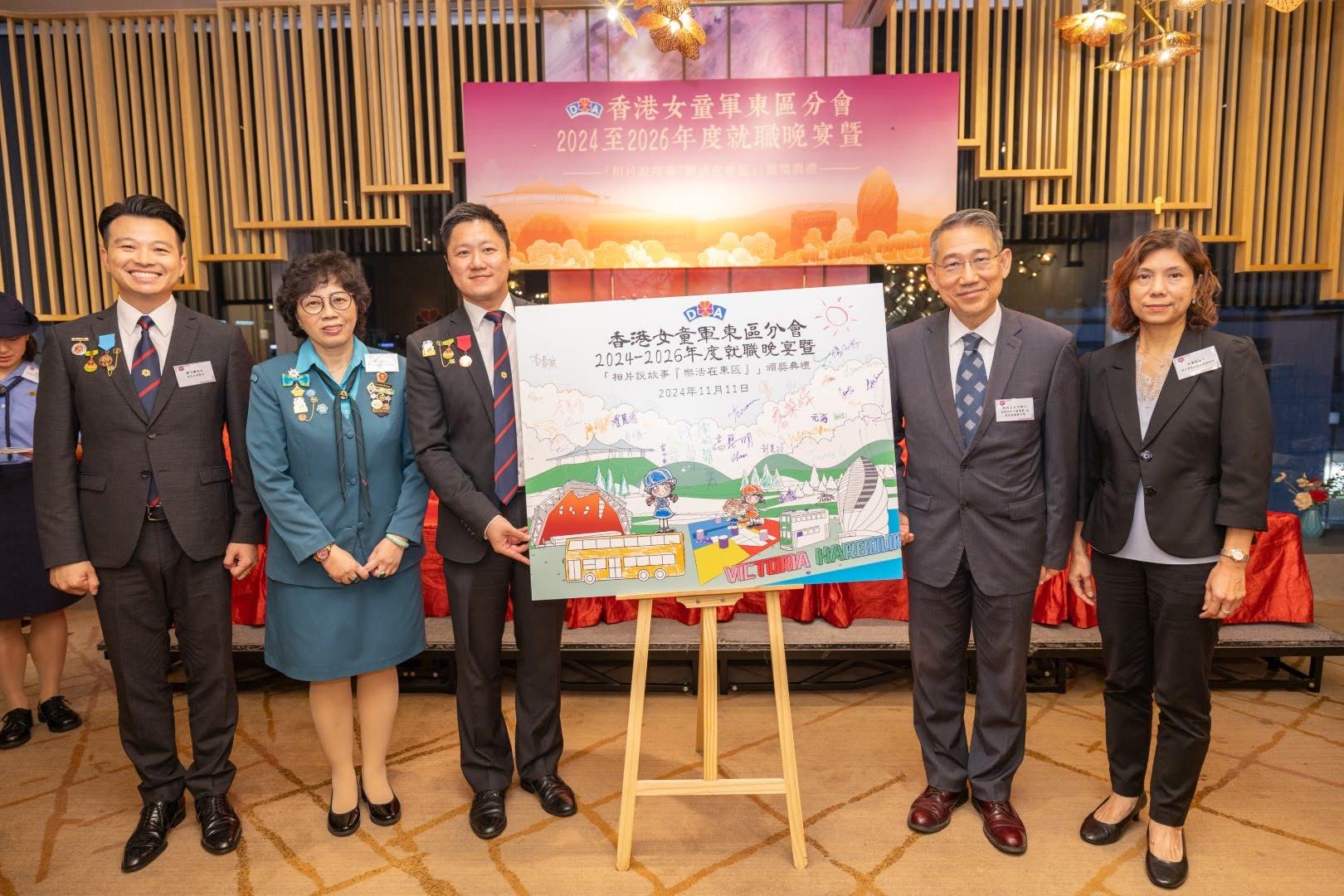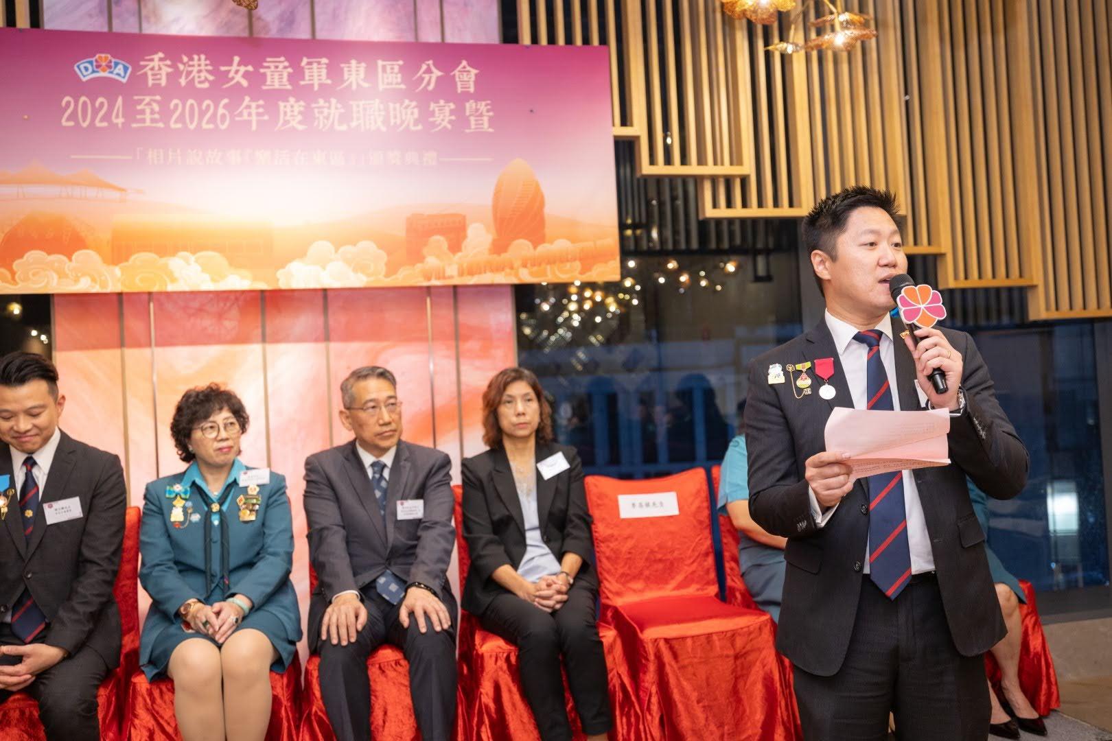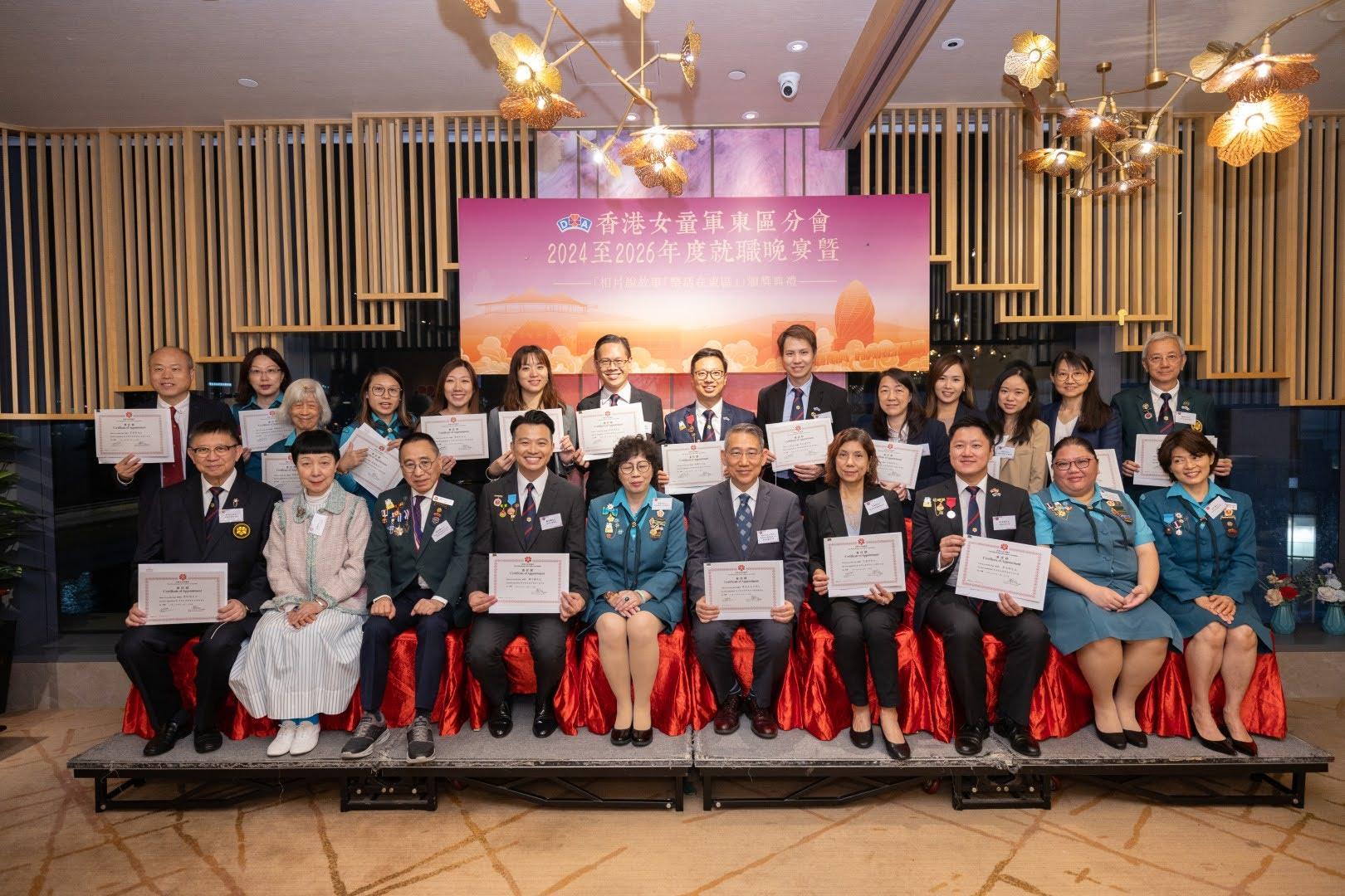 當日邀請到香港副總監霍麗逑女士、東區民政事務專員及東區區議會主席陳尚文太平紳士、康文署東區康樂事務經理李蕙明女士及助理總監 (港島地域) 劉子琪女士擔任主禮嘉賓。除了頒發委任狀外,亦頒發了2023年舉行的「相片說故事『樂活在東區』」各組別獎項。當晚亦有展出比賽作品、東區分會樂齡女童軍表演及豐富唱歌環節。東區分會會長、主席、名譽會長、執行委員、總監、領袖、各組別女童軍及分會友好聚首一堂,場面熱鬧。