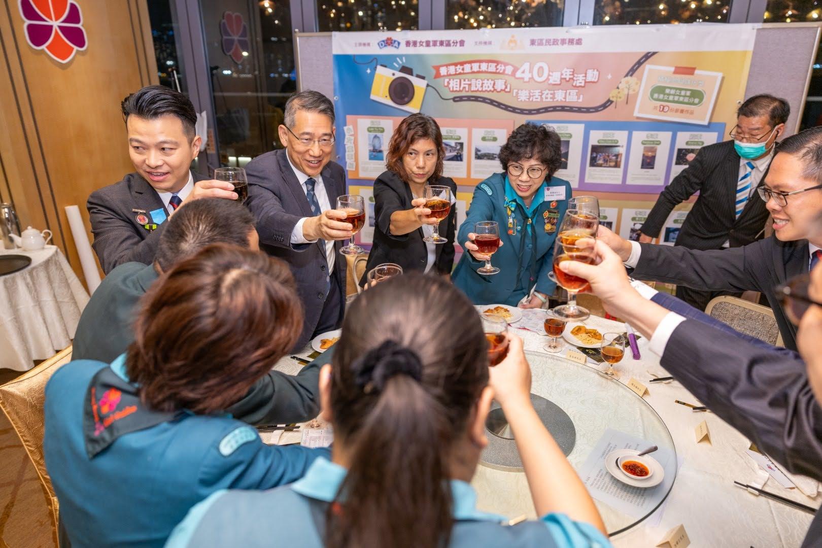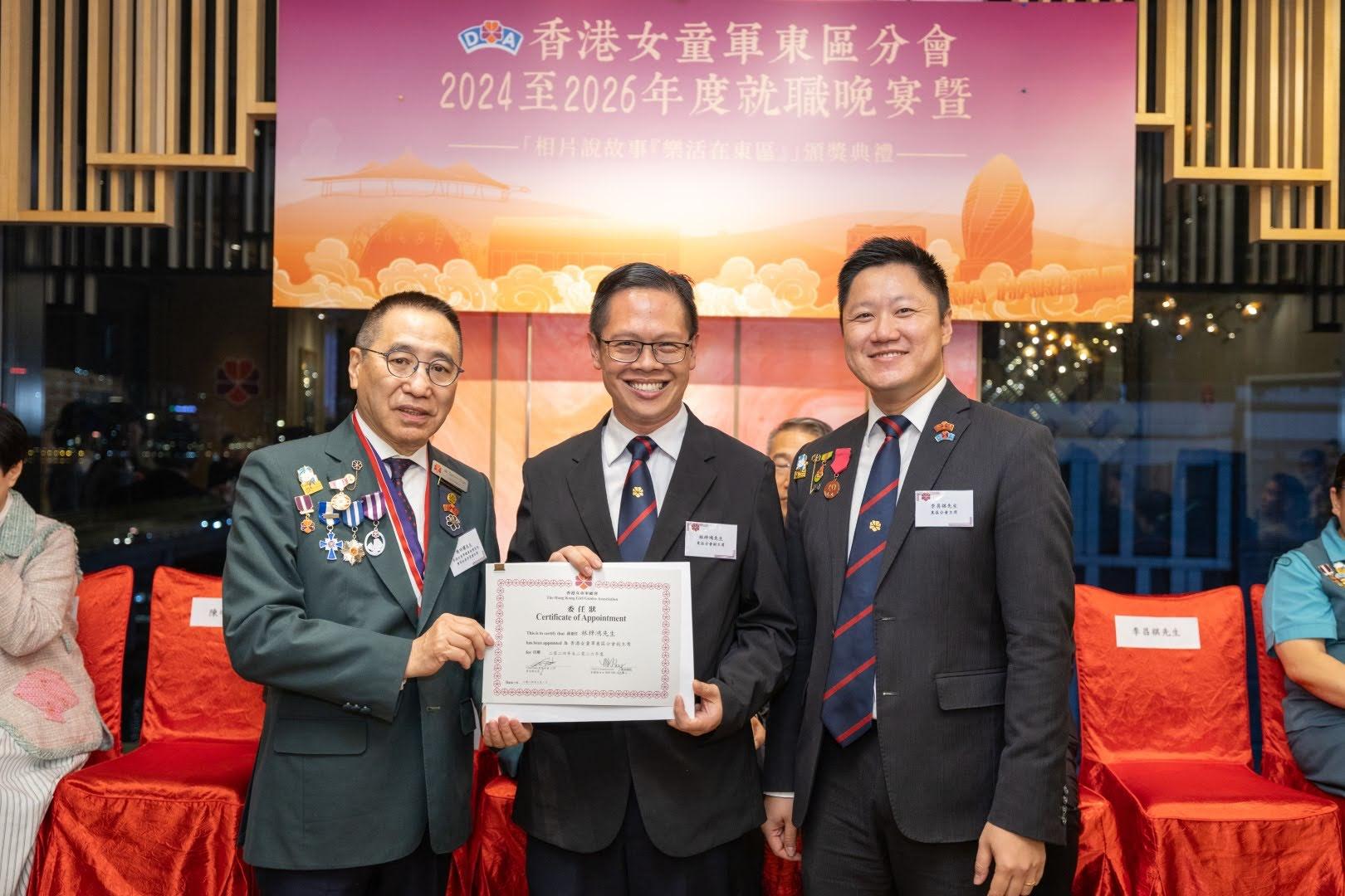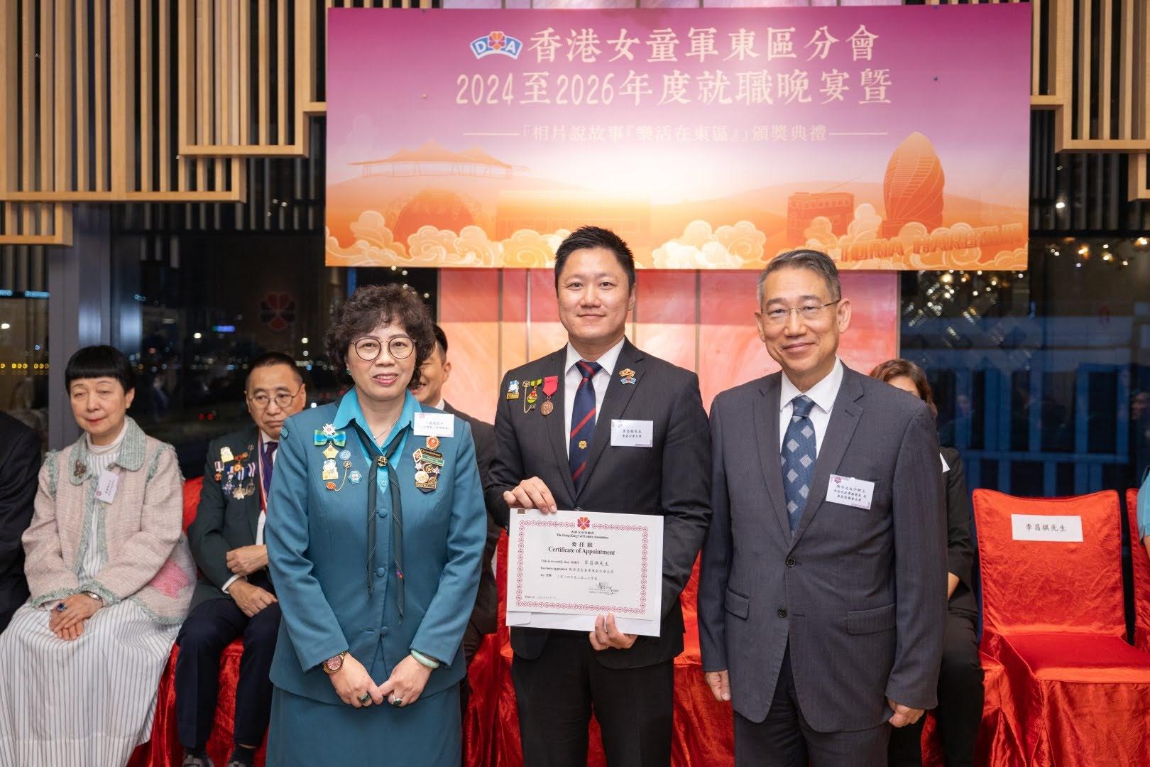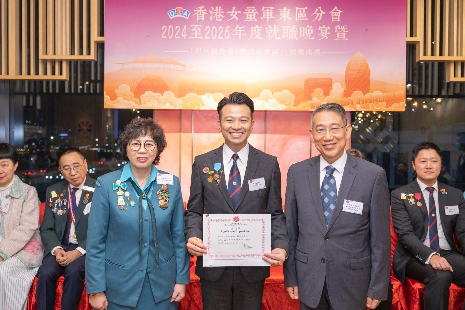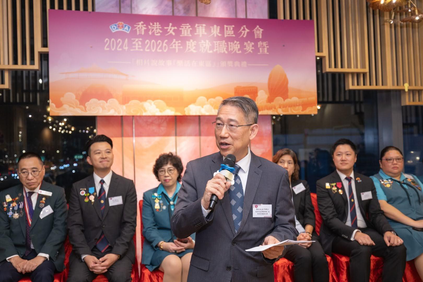 當日邀請到香港副總監霍麗逑女士、東區民政事務專員及東區區議會主席陳尚文太平紳士、康文署東區康樂事務經理李蕙明女士及助理總監 (港島地域) 劉子琪女士擔任主禮嘉賓。除了頒發委任狀外,亦頒發了2023年舉行的「相片說故事『樂活在東區』」各組別獎項。當晚亦有展出比賽作品、東區分會樂齡女童軍表演及豐富唱歌環節。東區分會會長、主席、名譽會長、執行委員、總監、領袖、各組別女童軍及分會友好聚首一堂,場面熱鬧。