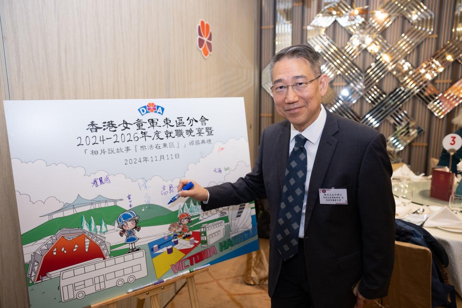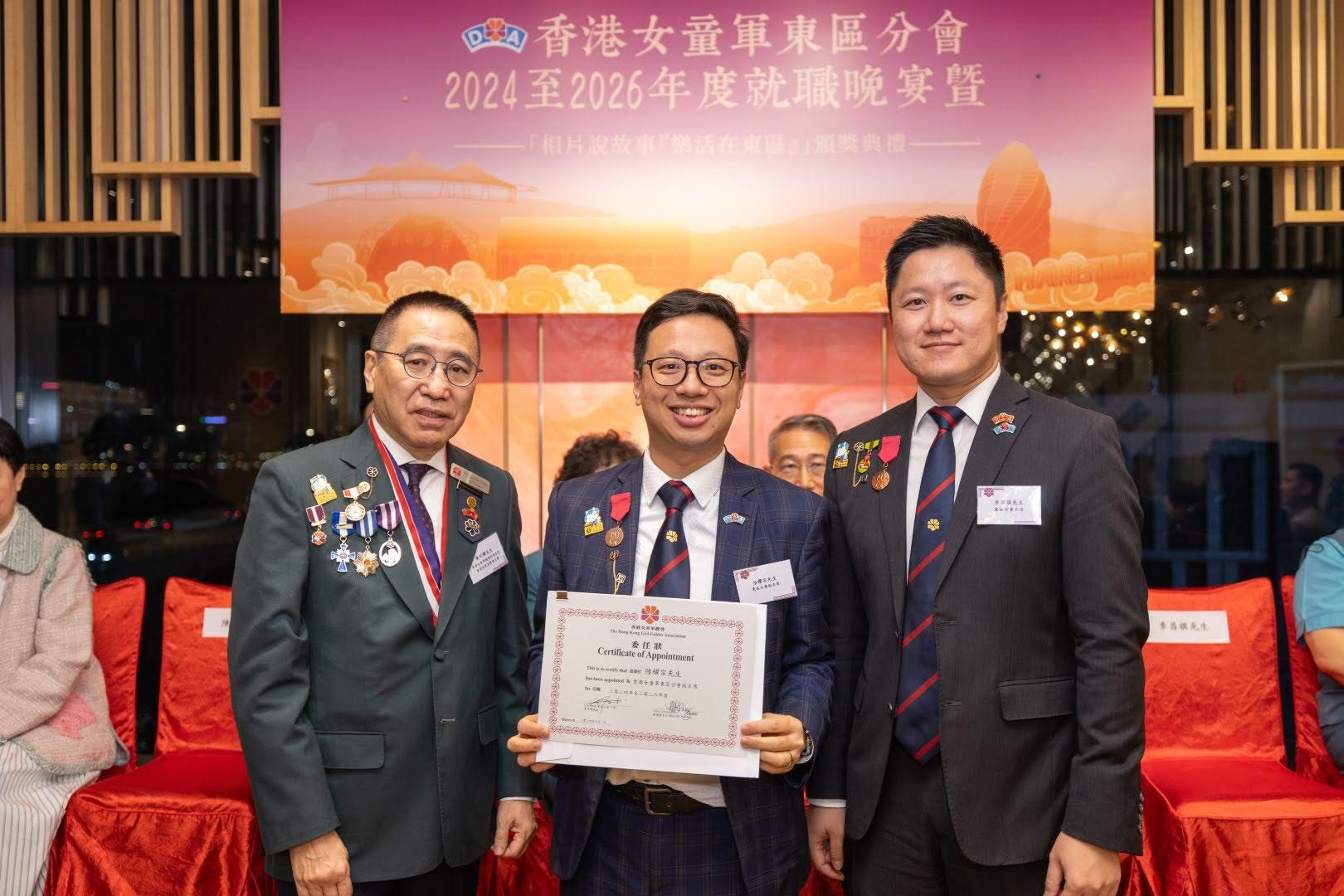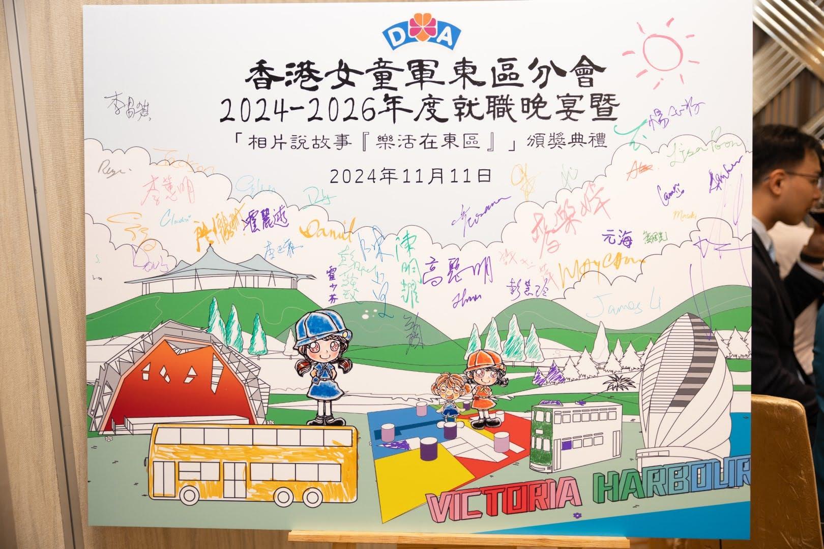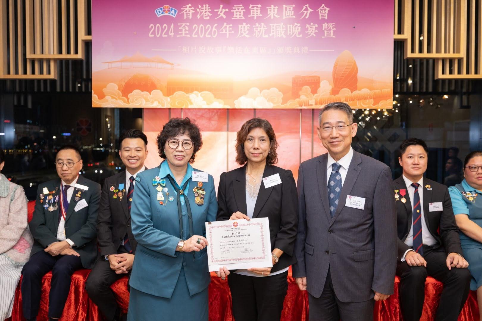 當日邀請到香港副總監霍麗逑女士、東區民政事務專員及東區區議會主席陳尚文太平紳士、康文署東區康樂事務經理李蕙明女士及助理總監 (港島地域) 劉子琪女士擔任主禮嘉賓。除了頒發委任狀外,亦頒發了2023年舉行的「相片說故事『樂活在東區』」各組別獎項。當晚亦有展出比賽作品、東區分會樂齡女童軍表演及豐富唱歌環節。東區分會會長、主席、名譽會長、執行委員、總監、領袖、各組別女童軍及分會友好聚首一堂,場面熱鬧。