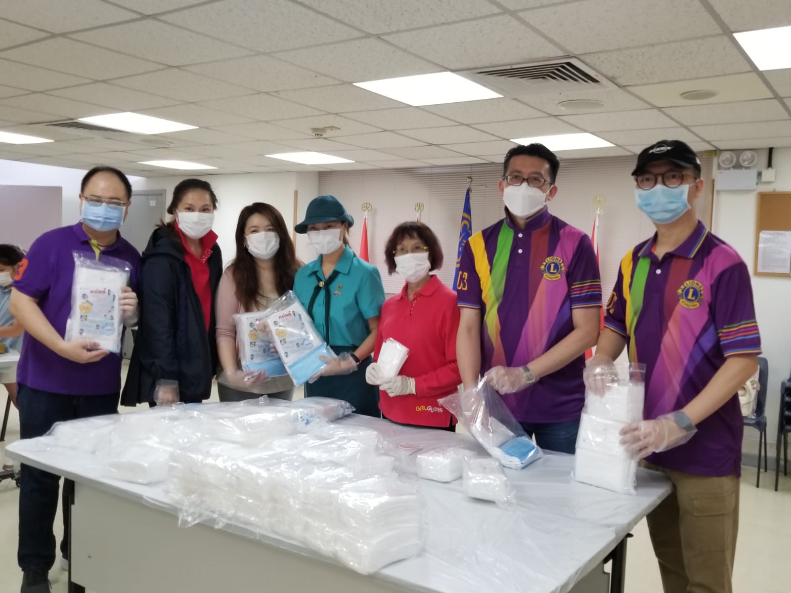 Our Association is very grateful to Kowloon Regional Association (KLNRA) and Lions Club of Hong Kong IFC for their kindness and generosity on donating surgical masks to the units in Kowloon Region. Due to raising demand of surgical msks after resumption of Girl Guide unit meetings, Ms Vivian Tsui, Chairlady of KLNRA donated 4,020 masks for children and 6,000 masks for adults; while Lions Club of Hong Kong IFC donated 2,000 masks for children and 500 masks for adults which means 12,250 masks in total will be provided to Brownies, Guides and Rangers in Kowloon.