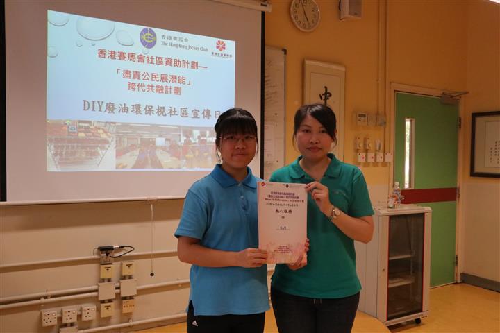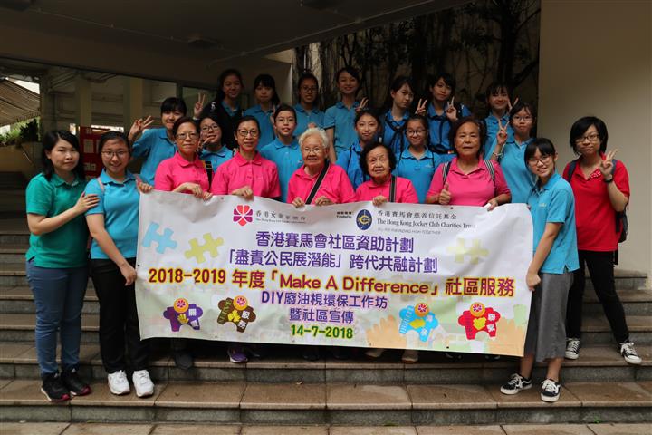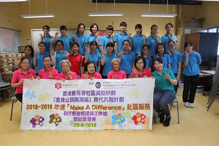 香港賽馬會社區資助計劃「盡責公民展潛能」跨代共融計劃 Make A Difference 社區服務計劃(隊伍層次) DIY廢油環保梘工作坊暨社區宣傳