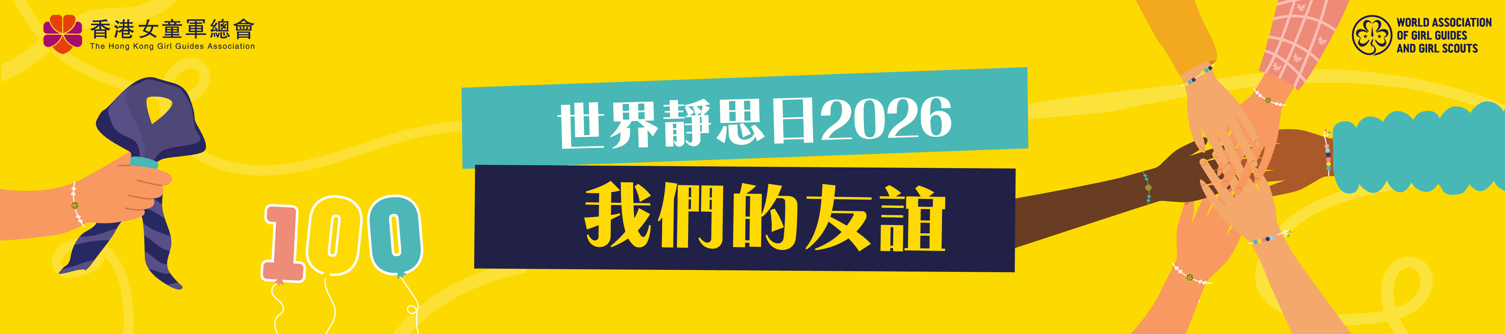 世界靜思日2026的主題是「我們的友誼」。適逢今年是世界靜思日的百年慶典,我們一同探索和慶祝在女童軍運動中建立和發展的所有非凡友誼,以及在妳自己的社區中建立的友誼。妳可以探索作為女童軍的意義,並慶祝過去100年來世界靜思日的影響和傳承。